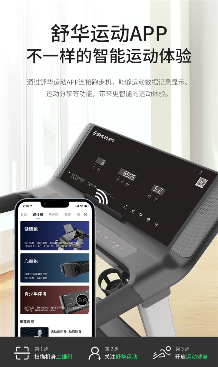 舒華I5智能家用跑步機(jī)是由舒華體育聯(lián)合中國(guó)體育科學(xué)學(xué)會(huì)、上海體育大學(xué)運(yùn)動(dòng)科學(xué)學(xué)院教授陸大江等權(quán)威機(jī)構(gòu)、專家共同研發(fā)設(shè)計(jì)。獨(dú)特之處在于它結(jié)合國(guó)際科學(xué)跑步研究理論,能夠針對(duì)不同用戶進(jìn)行運(yùn)動(dòng)能力測(cè)試,并根據(jù)測(cè)試結(jié)果生成因人而異的有氧運(yùn)動(dòng)處方。這意味著每個(gè)用戶都能得到一個(gè)適合自己的運(yùn)動(dòng)方案,從而更好地達(dá)到運(yùn)動(dòng)效果。這一創(chuàng)新技術(shù)可以確保用戶在運(yùn)動(dòng)過(guò)程中能夠保持在最佳的區(qū)間狀態(tài),從而提高運(yùn)動(dòng)安全性和有效性。