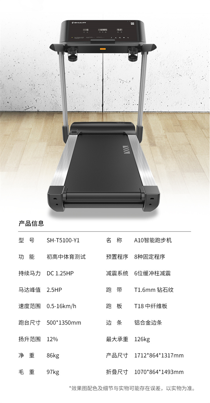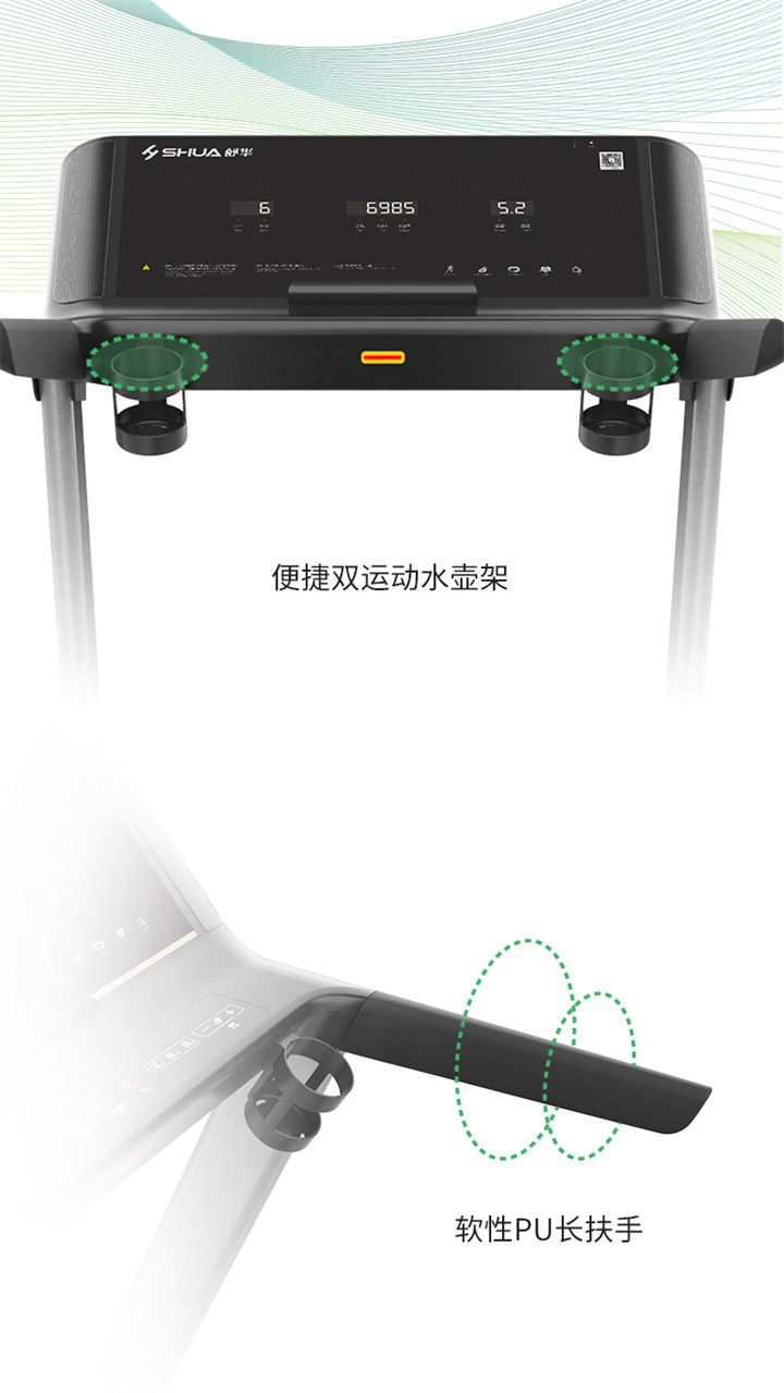 舒華跑步機(jī)SH-T5500采用T18mm的跑板,T1.6 鉆石紋的跑帶,運(yùn)用6位硅膠減震,對(duì)您跑步中的膝蓋進(jìn)行全方位的呵護(hù),選用手握心率測(cè)試,跑步面積達(dá)480×1350mm,可承受126kg的使用者使用。