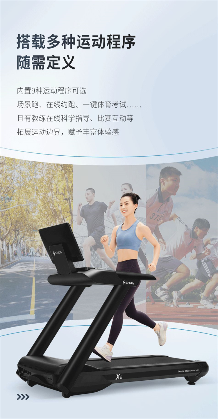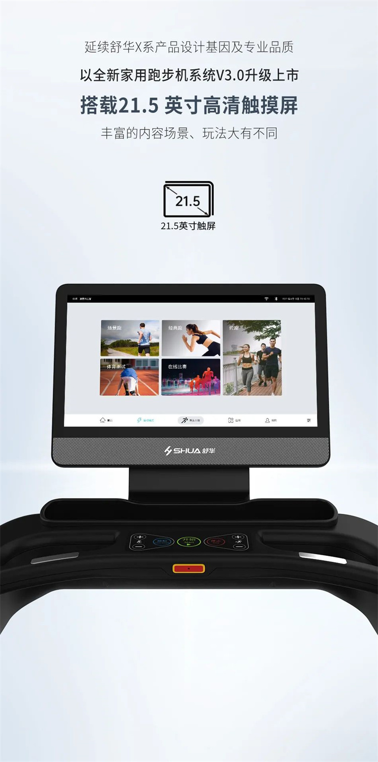 舒華X5 Pro豪華智能跑步機(jī)采用全新舒華跑步機(jī)系統(tǒng),搭載21.5寸大屏,內(nèi)置九種運(yùn)動程序,包括場景跑、在線約跑和一鍵體育考試等內(nèi)容,亦有教練在線科學(xué)指導(dǎo)和比賽互動,可在線升級,歷經(jīng)耐久性測試,讓您使用更安全,雙跑臺設(shè)計,全減震系統(tǒng),核心動力采用F級耐高溫馬達(dá),5.0HP峰值馬力,提供源源動力,讓您享受每一次暢跑體驗(yàn)。